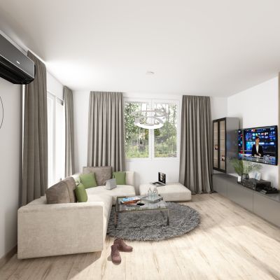 A lakás a dél-nyugati tájolásának köszönhetően barátságos, egész nap világos és napfényes.