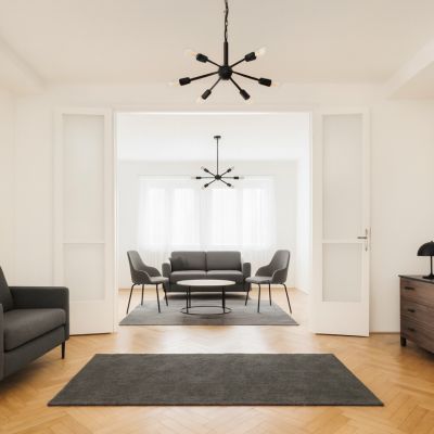 A mellékelt alaprajz szerint a lakásban három nagyméretű szoba, hall, gardrób, konyha, fürdőszoba + wc található. (Saroklakásként a konyha és a fürdőszoba is ablakos, tágas.)