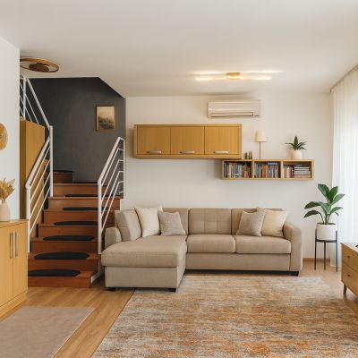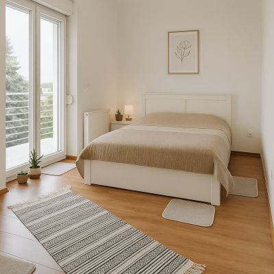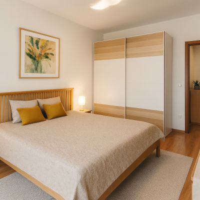 Az ingatlan dél-nyugati fekvésének köszönhetően világos, napfényes. Remek elosztasú: a felső szinten található 2 háló + 1 félszoba, egy tágas fürdő és külön WC. Két hálóból is teraszajtón lehet kijutni a 17 nm-es erkélyre. Az alsó szinten egy nagy méretű hálószoba, egy kis fürdőszoba és egy amerikai konyhás nappali