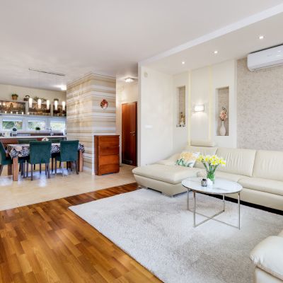 Az ingatlan egy újszerű, 6 lakásos, liftes társasház első emeletén található, és a 90 m²-es lakótér mellett egy részben panorámás, 14 m²-es, dél-nyugati tájolású terasszal is rendelkezik, mely a nap minden szakában természetes fénnyel árasztja el az otthont.