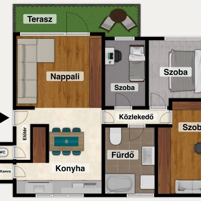 Szobák száma: 4 (nappali + 3 hálószoba)