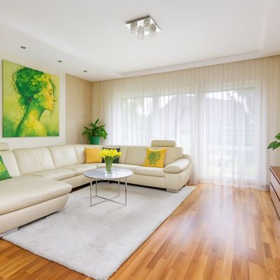 A terasz teljes szélességében motoros, szélérzékelős napellenző biztosítja a kellemes árnyékolást a nyári napokon. A fűtést és melegvizet gázkazán szolgáltatja, a járólapos helyiségekben padlófűtés, a szobákban radiátoros fűtés működik.