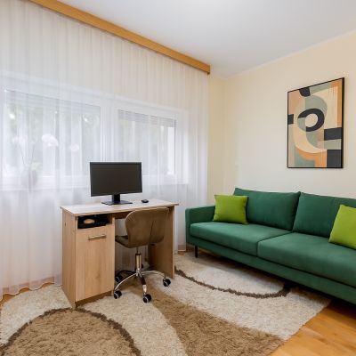 A társasház gondozott, parkosított kerttel, automata öntözőrendszerrel, saját játszótérrel és kertésszel rendelkezik – ideális családosok számára is.