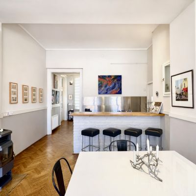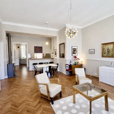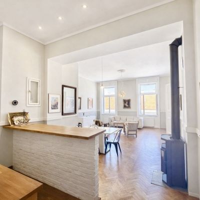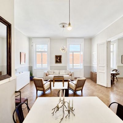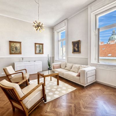 Eladó panorámás magas emeleti polgári lakás, kilátással a Szent István Bazilikára.