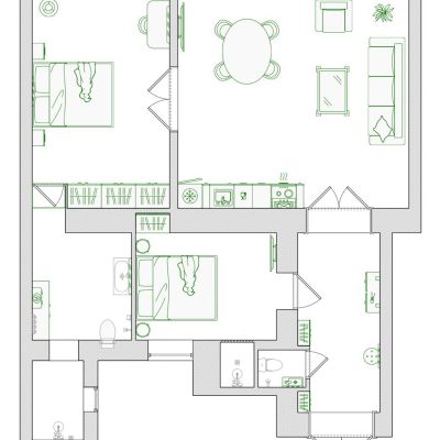 - második hálószoba/dolgozószoba/gyerekszoba 11 m2 saját zuhanyzóval.