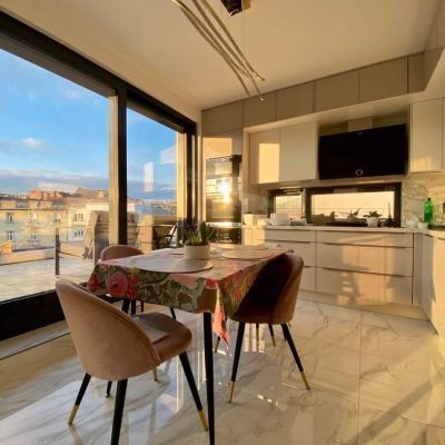 Eladó egy gyönyörű panorámájú, 113 nm-es, 3+1 félszobás penthouse lakás 78 nm-es körterasszal, két teljes