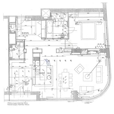 Nappali amerikai konyhával, 2 hálószoba (mindkettő saját fürdővel), vendég-WC, kis erkély.