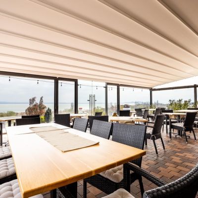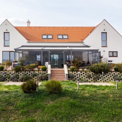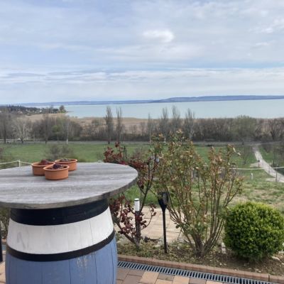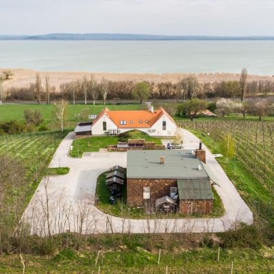 A Balaton északi partján, panorámás étterem + panzió + szőlőbirtok + borospince + borászat eladó!