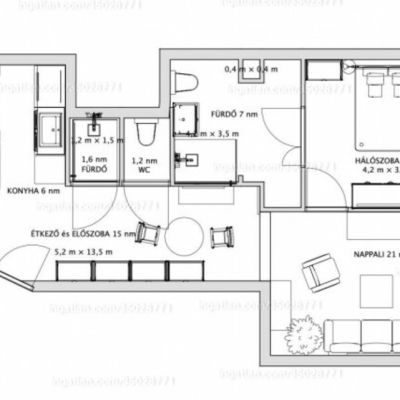 - 2 fürdőszoba, az egyik a hálóból közvetlenül nyílik
