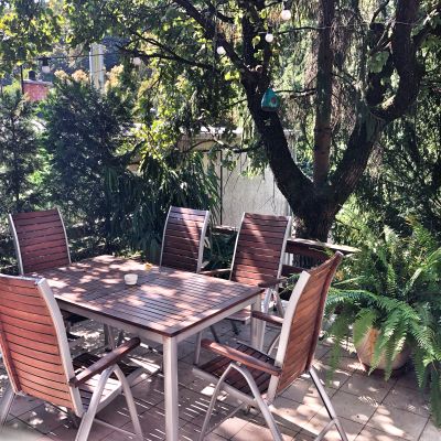 Teljesen önálló, külön bejárattal. Vendégeknek, irodának, műteremnek vagy stúdiónak is ideális, közvetlen kertkapcsolattal.