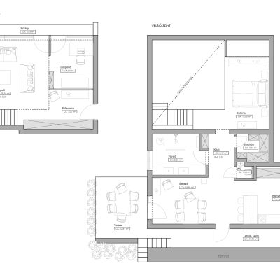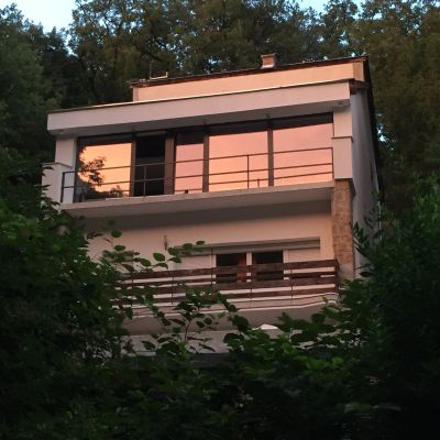 Farkasvölgy legszebb, déli tájolású domboldalán eladó egy kétlakásos ház egyik, kertkapcsolatos lakása – két önálló garázzsal, saját vendégházzal és ősfás, panorámás kerttel. A 2016-ban teljeskörűen átépített ingatlan karakterét a letisztult, loft stílusú terek, a természetes anyaghasználat és a belsőépítészeti precizitás határozzák meg.