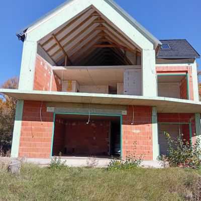 Pesthidegkút-Ófaluban eladó egy jogerős építési engedéllyel rendelkező, most épülő, két albetétes családi ház. Jelenlegi készültségi fok: 60%