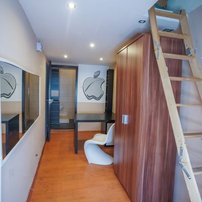 -a kis lakásban zuhany, mosdó, wc, klíma, radiátorok találhatók, és 10nm.-es teljes értékű leburkolt galéria található, ahol egy 160x200 as matrac elfér.