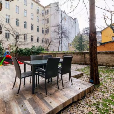 Eladó egy kivételes, 160 m²-t meghaladó alapterületű, tágas lakás a Vígszínházzal szemben, melyhez egy ritkaságszámba menő, 75 m²-es privát kertkapcsolat is tartozik. Az ingatlan három hálószobával és két fürdőszobával (egyik káddal) rendelkezik, a közösségi tereket pedig egy 45 m²-es nappali és egy 25 m²-es, teljesen felszerelt konyha alkotja. Ez az ingatlan ideális választás családi otthonnak, irodának vagy prémium kategóriás befektetésnek.