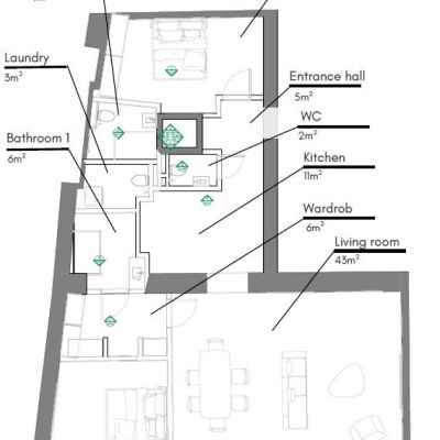 A lakás korszerű műszaki megoldásai – hőszivattyú, padlófűtés és okosotthon rendszer – nemcsak kényelmet, hanem energiatakarékos működést is biztosítanak.