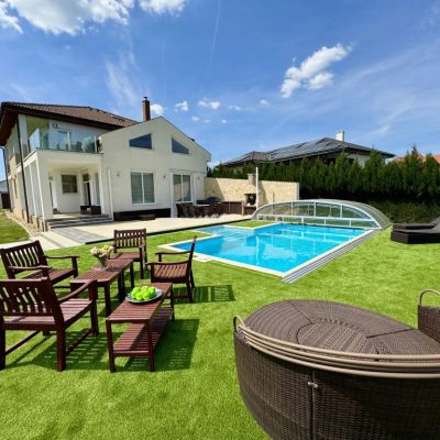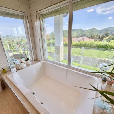 Panorámás családi ház eladó Csobánka új építésű részén. Amerikai konyhás nappali + 3 háló 3 fürdőszobával, gardróbszoba, mosókonyha, tároló, dupla garázs stb. Kertben fűthető medence, kerti tároló, kutyakennel, kerti sütögetők stb. Energiatakarékos otthon.