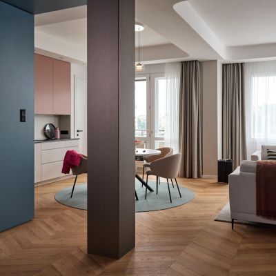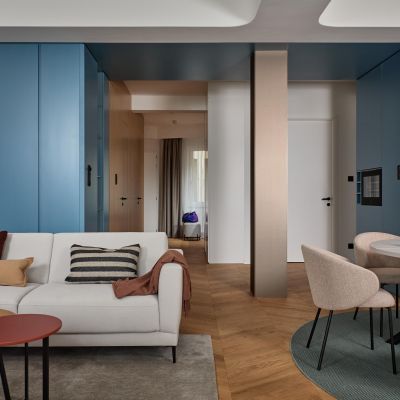 A Belgrád rakpart 2. szám alatti épület 1938-ban, Möller Károly tervei alapján épült. A ház a Bauhaus szellemiségét idézi, miközben természetesen illeszkedik a Duna-part ikonikus városképébe. Az épület világörökségi védelem alatt áll. A lakás belső világa ezt az örökséget kortárs eleganciával egészíti ki, ötvözve a múlt értékeit és a mai életstílus igényeit. Az esti órákban a fények játéka különleges hangulatot teremt: a kivilágított Duna-part, a Gellért Szálló, a Szabadság híd és a Szabadság-szobor fényei páratlan látványt nyújtanak.