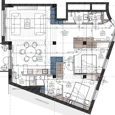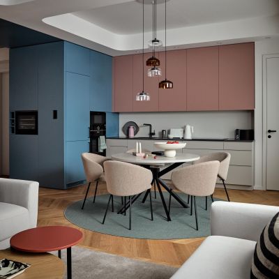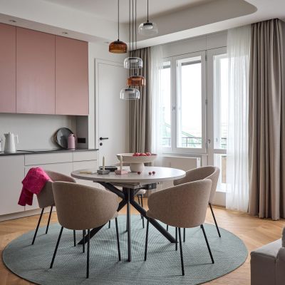 A 40 m²-es nappali és étkező-konyha elrendezése úgy készült, hogy a lakók minden nap élvezhessék a Duna, a Gellért-hegy és a Citadella lenyűgöző panorámáját.