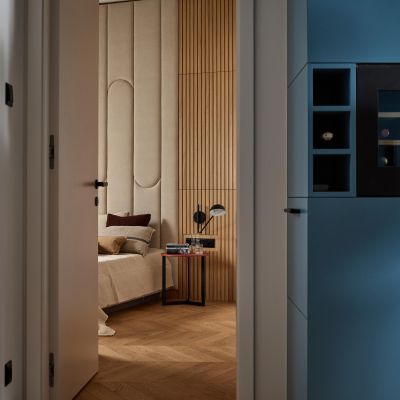 A szülői háló külön egységként működik, saját gardróbbal és fürdőszobával, teljes szeparáltságot biztosítva.