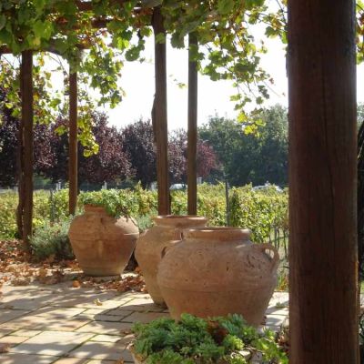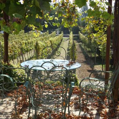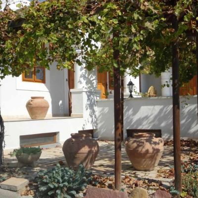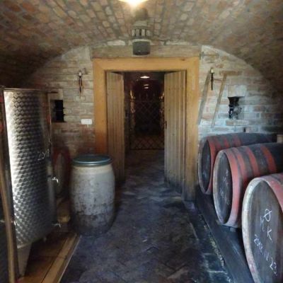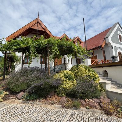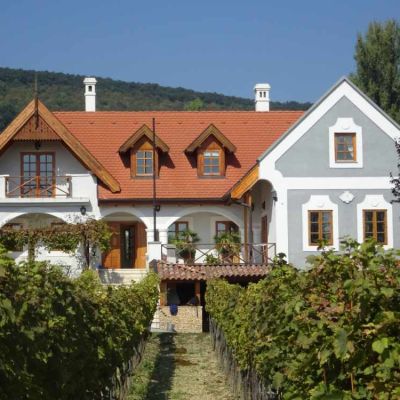 A ház előtti részen gondozott olaszrizling biztosítja a megfelelő alapanyagot a bor készítéséhez, melynek helyszíne a látványos borospince.