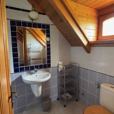 A földszinten tágas nappali, étkező konyha, vendégszoba, fürdőszoba és szauna, míg az emeleten nappali, 3 háló, 2 fürdő és panorámás erkély található.