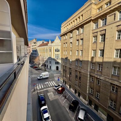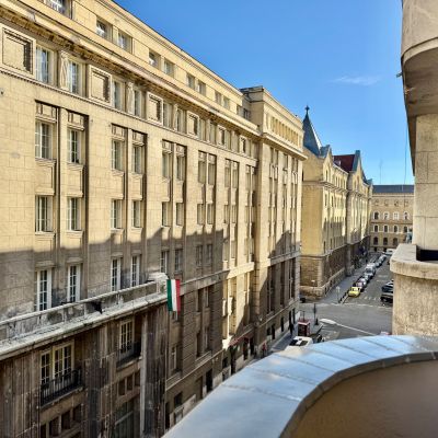 Lokációja prémium: a Kossuth tér 100 méterre, a Szabadság tér kb. 500 méterre található. Egyirányú, csendes utcában, mégis a belváros szívében.
