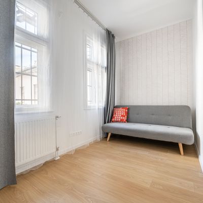 Eladó a Régi posta utca Dunához közelebbi részén, részben dunai kilátással, patináns épületbe, teljesen felújított, negyedik emeleti, liftes, közvetlenül lépcsőházból nyíló, napos, déli fekvésű, világos, csendes lakás.